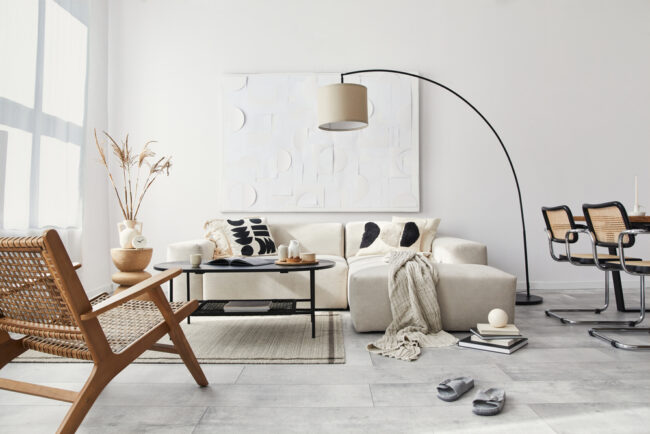 Use the material of your seating for an unexpected surprise– metal in a soft space, velvet in a minimalist zone, or wood in an industrial realm.
