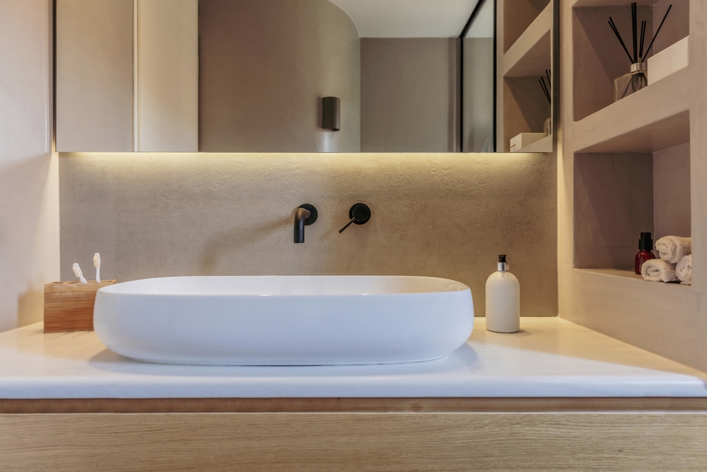 Great design is all about layering different elements. Floating shelves provide a place for new decor without taking up valuable walking space. You can play with the shape of your shelves for added interest!