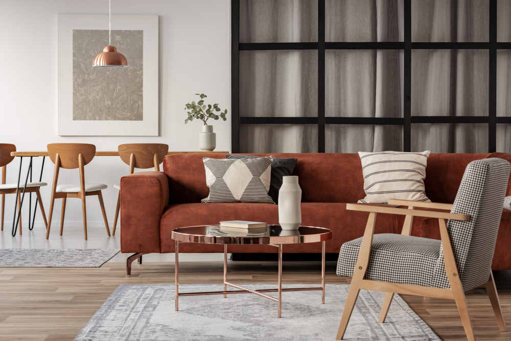 Balance is important here too. Natural materials tend to feel more rustic, so balance them out with modern pieces, like combining a raw-edge wooden dining table with modern seating. Stone vases and lamps introduce an earthy element, but stick to organic shapes over more ornate, traditional styles.