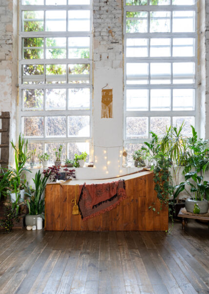 If it was possible (or ethical) to steal a bathtub, we’d be walking out of this bathroom hauling this one! The wood exterior is a nature enthusiast’s dream base for relaxation. The twinkling lights behind it are also a charming touch to give the bath a glow.