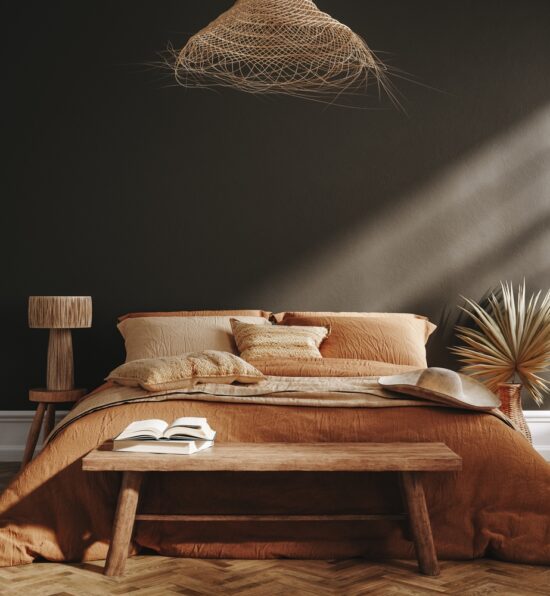 The bedroom is the best place to be a little braver with your decor. It’s the place you should feel the most comfortable being yourself. Pick bolder earth tones and bring in all the natural materials to create a place that will allow you to be the best version of yourself!